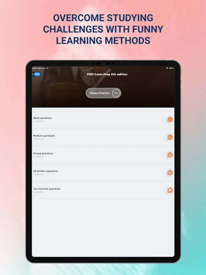 We take each exam and break it down into PMBOK Knowledge Areas so that you can filter your study sessions based on your needs. Our app conforms to the latest 2021 guidelines and requirements.