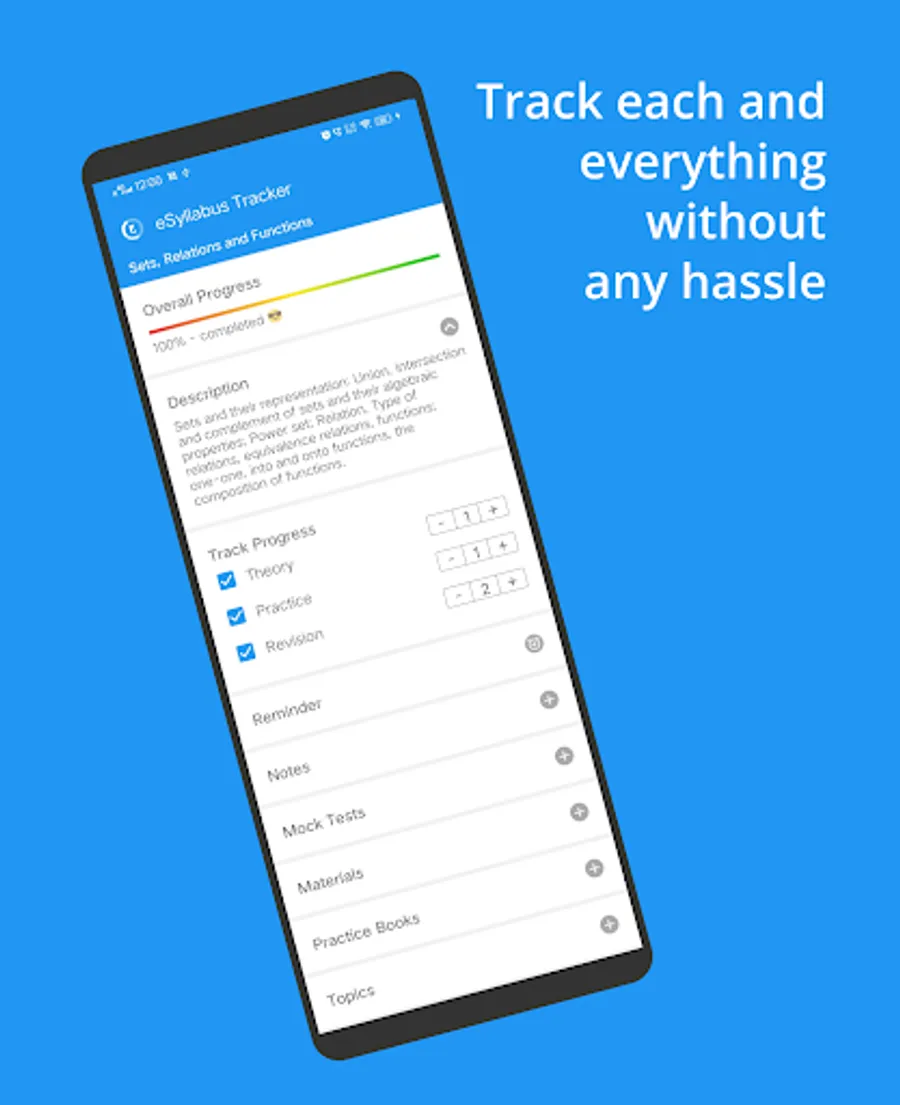 It is easy to use with great UI/UX and a highly appreciated App for tracking your progress for JEE, NEET, UPSC, and all other premium examination preparation & managing all resources in one place while taking care of timely revision using chapter-wise reminders. If you are worried about your syllabus progress and completion, It is the best app to try once for syllabus progress and completion with mock test tracking at the microlevel with well-detailed remarks and controls. You can even manage your Important PDF materials chapters for easy Accessing, Modifying (Highlighting and Underlining important paragraphs), and Studying.