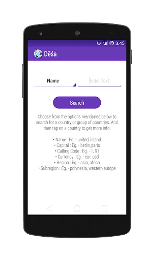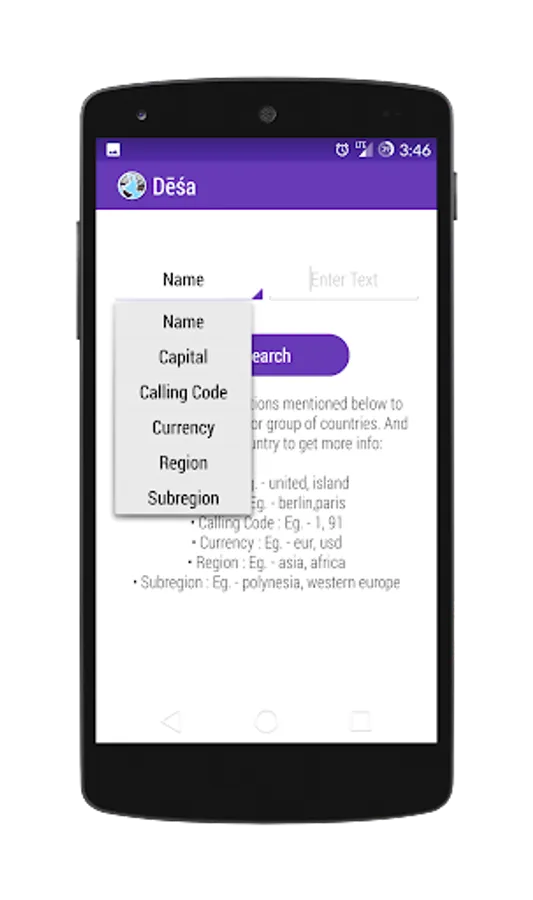 Search the country/countries based on Name, Capital, Region, Calling Code, Currency or a Subregion.