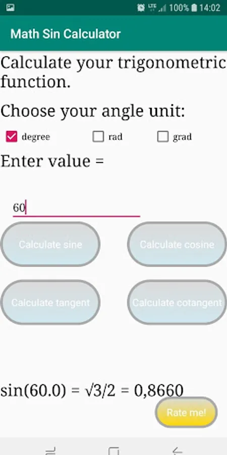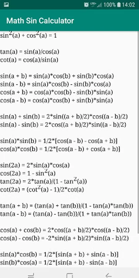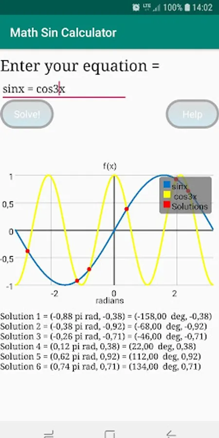 Trigonometric calculator and equations solver (and not only) all in one! It is really useful in any math related classes and calculations. This calculator is a must have for every student!