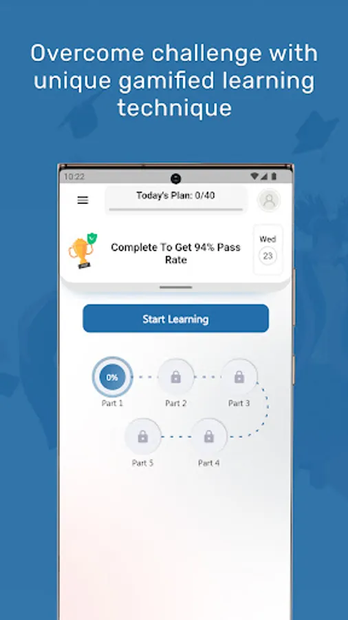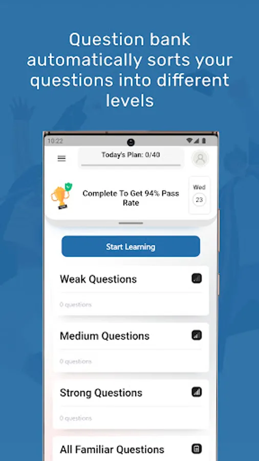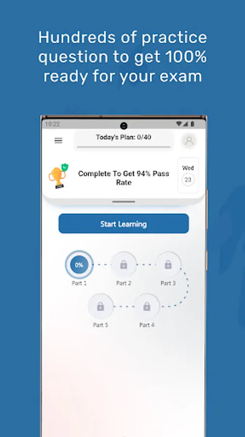 - Personal Study Plan: Just enter your test date, a study plan will be set up for you. A clear schedule will surely exceed your expectation and get you best preparation for the read shot.
