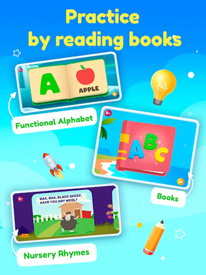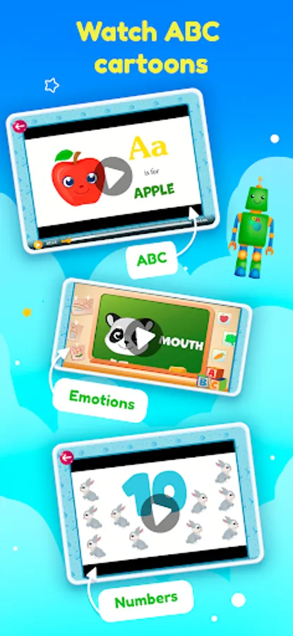 Our super letters will guide you through loads of super abc games for kids freely and joyfully, teaching letters and sounds with letters learning games for kids. Our amazing alphabet app features: