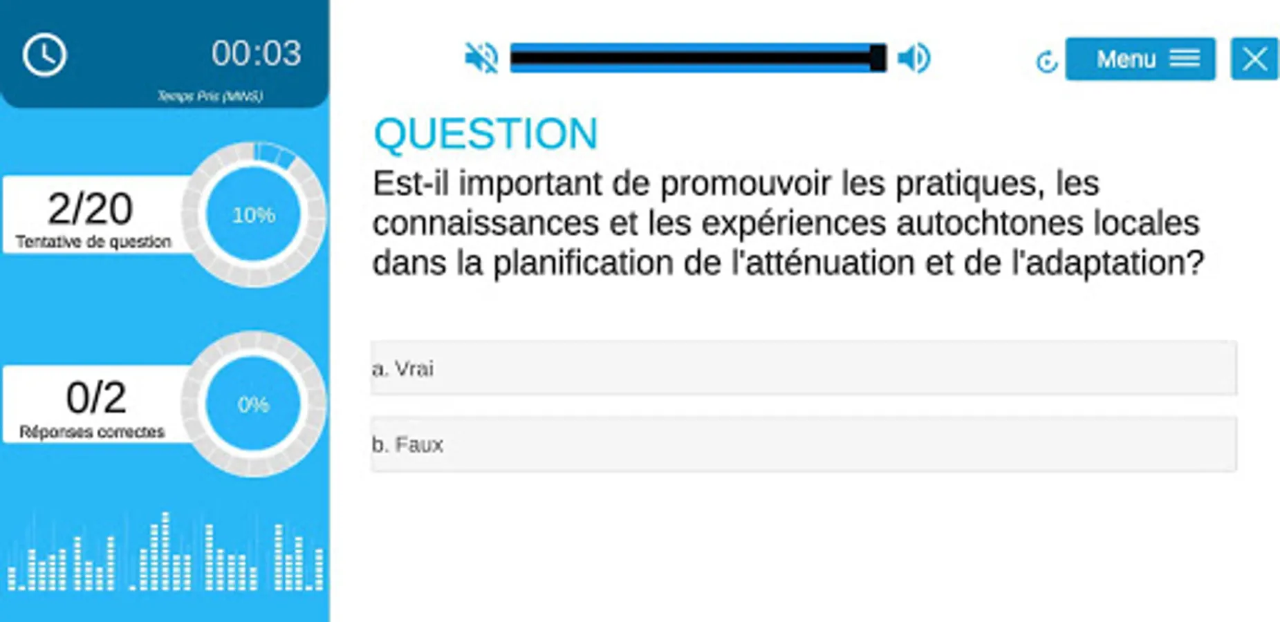 This mobile application is designed to build their capacities on Climate Change basic principles, adaption, and mitigation. Its content emphasizes the role of education and the learning process in developing a climate neutral culture. It also builds students’ knowledge and skills in Climate Change, and it enables them to analyse and monitor climate change risks, vulnerabilities, and capacities in their communities, to better protect themselves, and to share their informed views to influence climate change governance and planning.