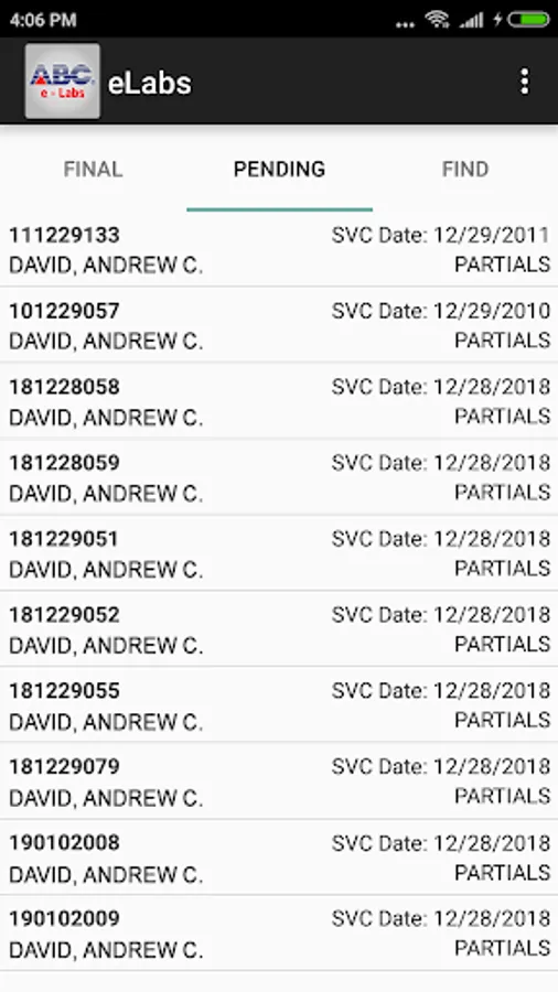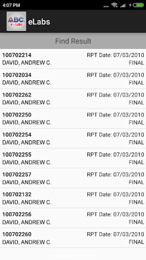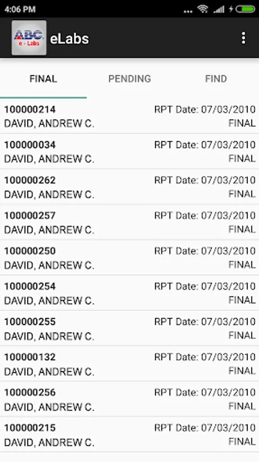 The application is for the use of ABCLAB clients to view their patient results
