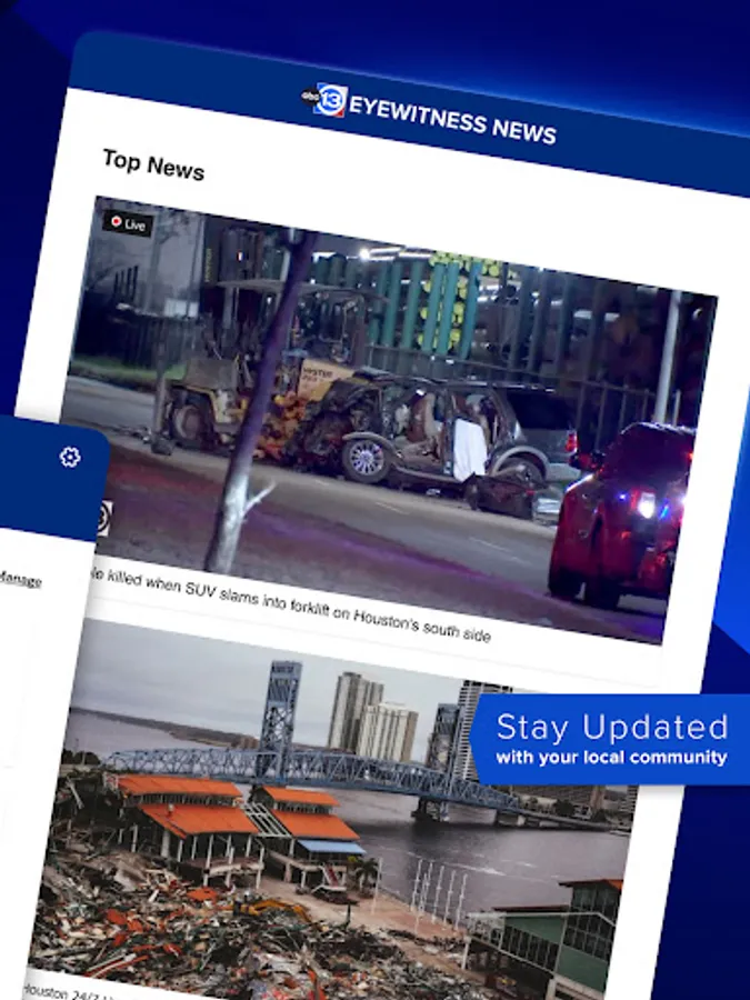 The ABC13 app provides the latest breaking news and weather with alerts customized for you! Get more live video than ever before with the 24/7 live stream.