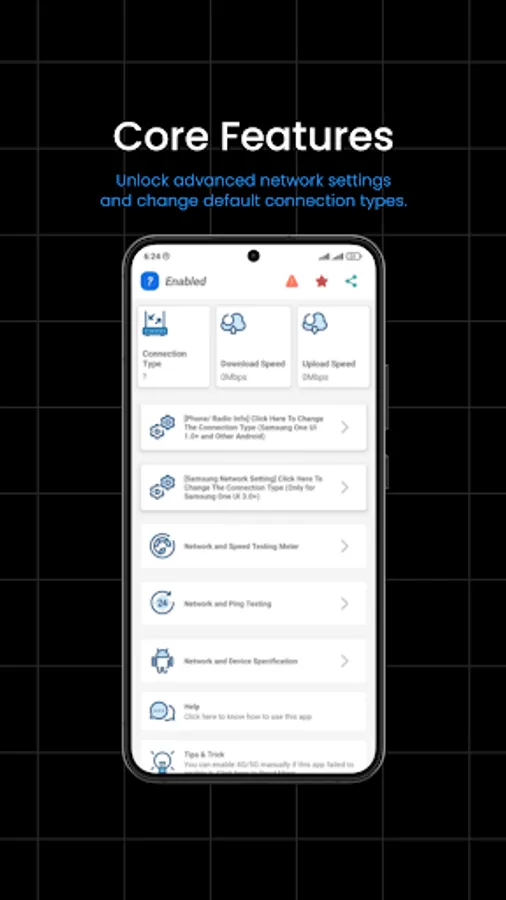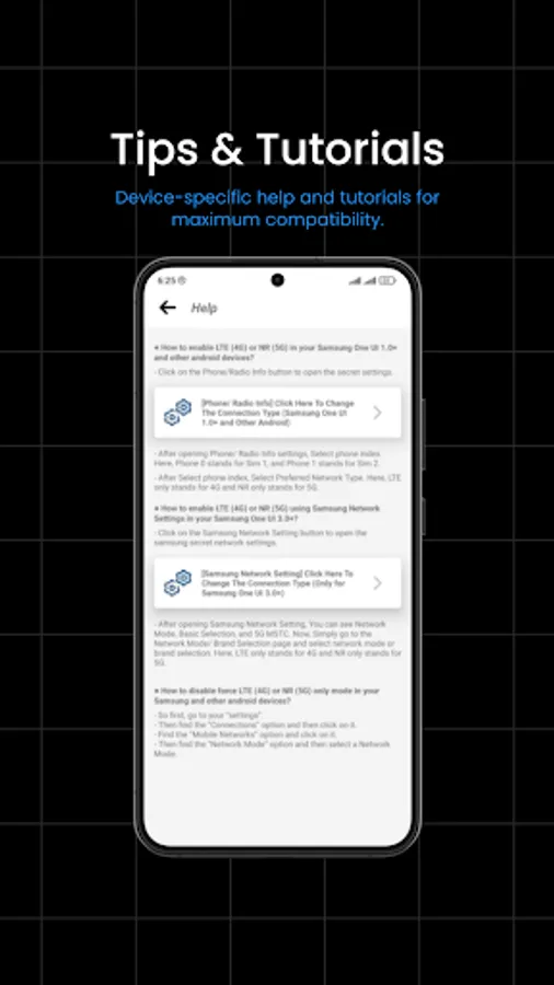 But that's not all - Force 5G also provides internet speed testing and ping checks, allowing users to optimize their network connection for maximum performance. The app also includes device-specific tutorials and settings for popular brands like Samsung, Xiaomi, SONY, and Google Pixel.