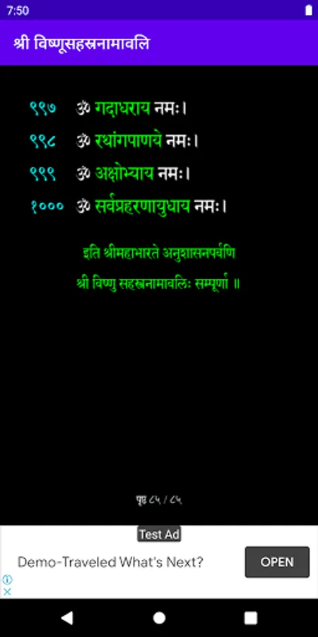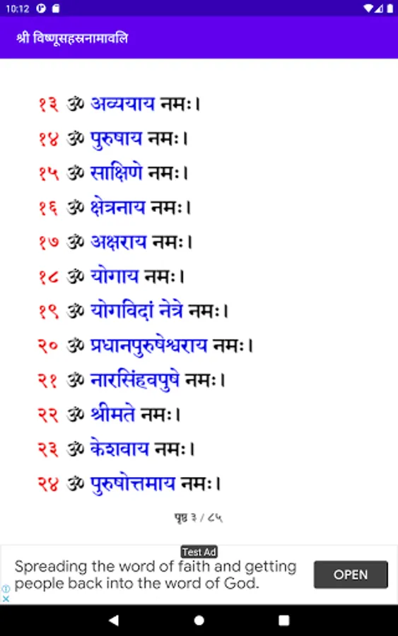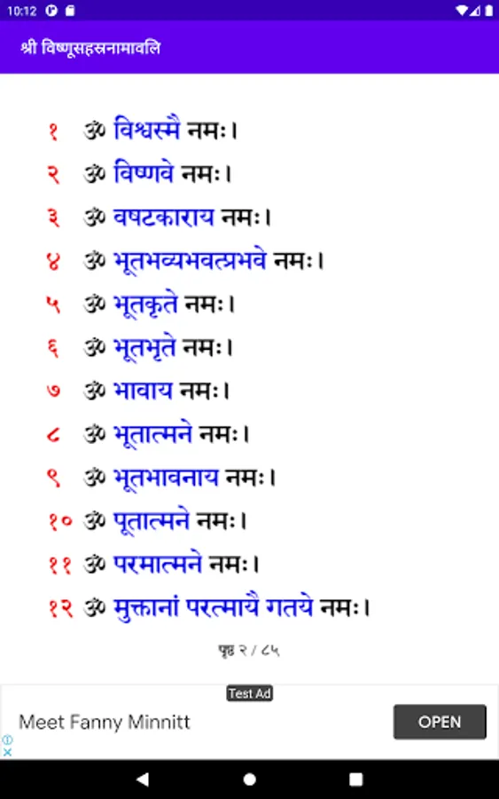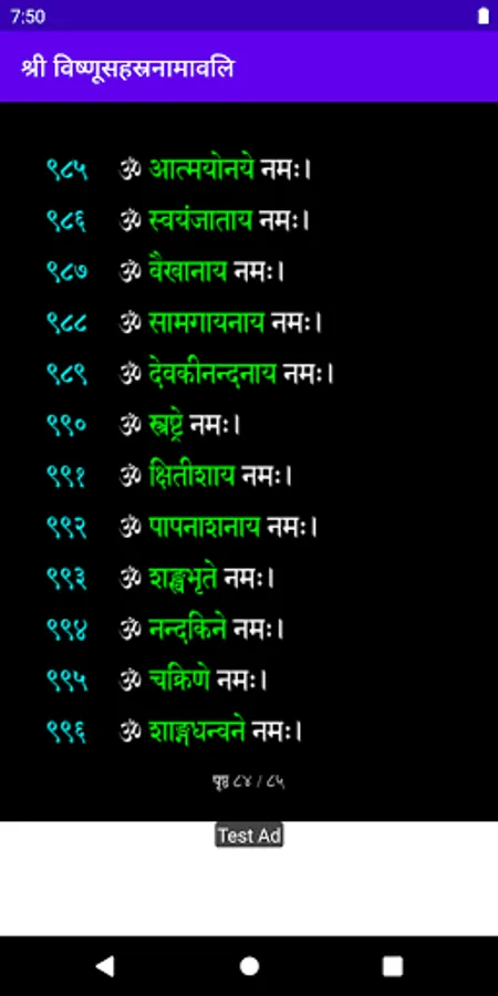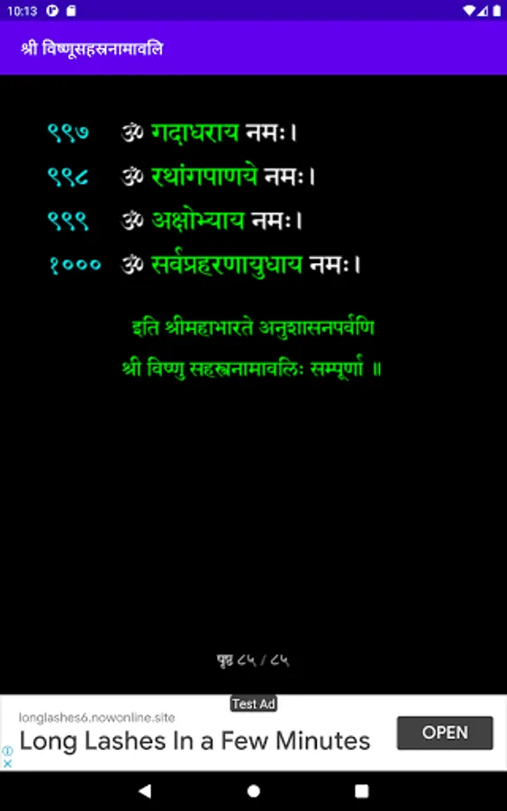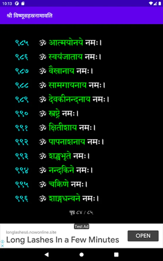The Vishnu Sahastranamavali ("the thousand names of Vishnu") is a list of 1,000 names Sahastranamavali) of Vishnu, the supreme god of Hindus (Vaishnavs). It is also one of the most sacred and commonly chanted stotras in Hinduism. The Vishnu sahasranamavali is found in the Mahabharata. Each name eulogizes one of His countless great attributes.