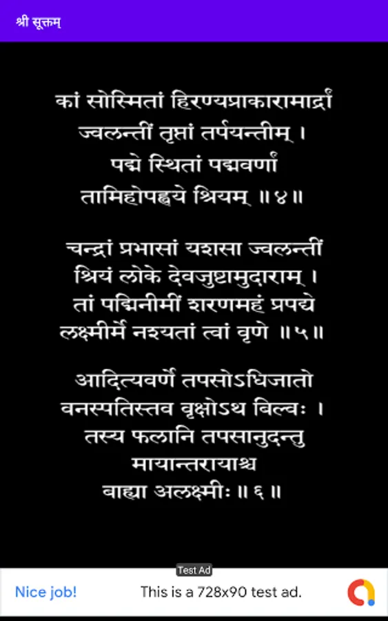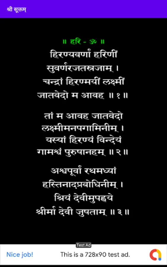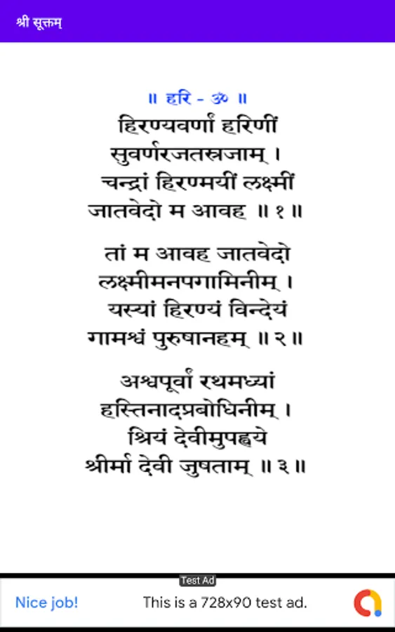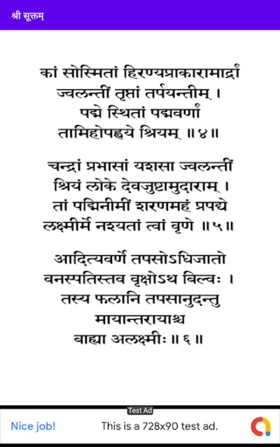 Sri Suktam is a Sanskrit devotional hymn revering Sri as Lakxmi, the Hindu goddess of wealth, prosperity and fertility. The hymns are found in the Rig Vedic khilanis. Sri Sukta is recited, with a strict adherence to the Chandas, to invoke the goddess' blessings.