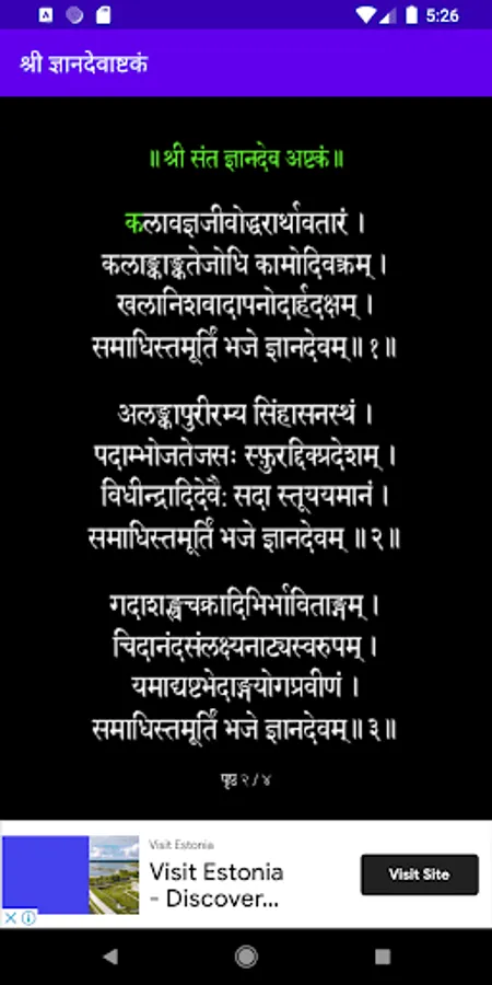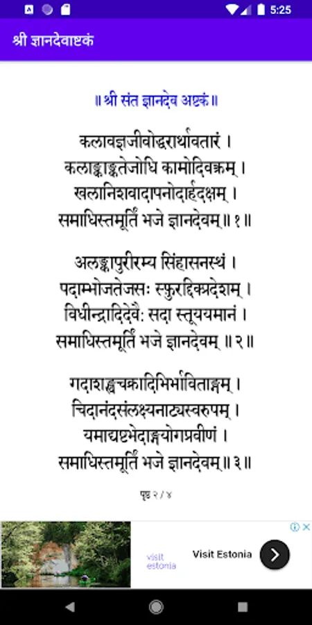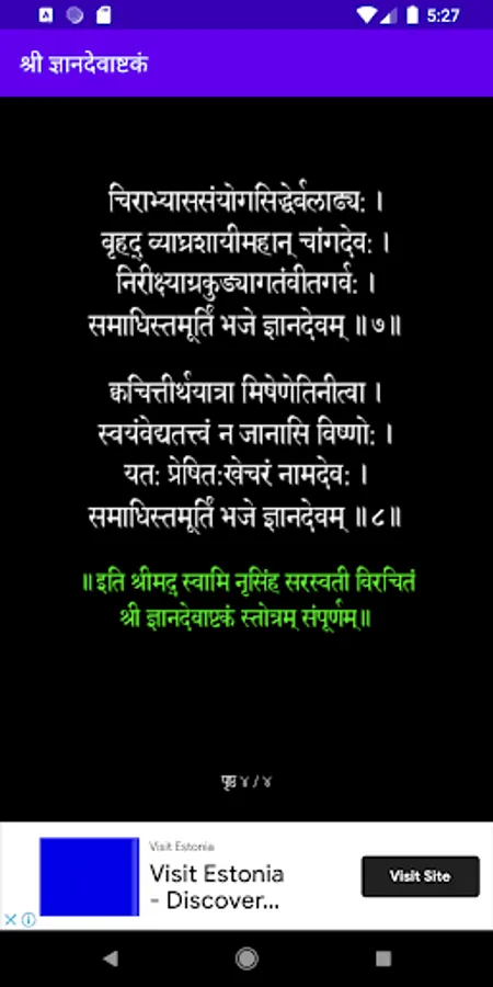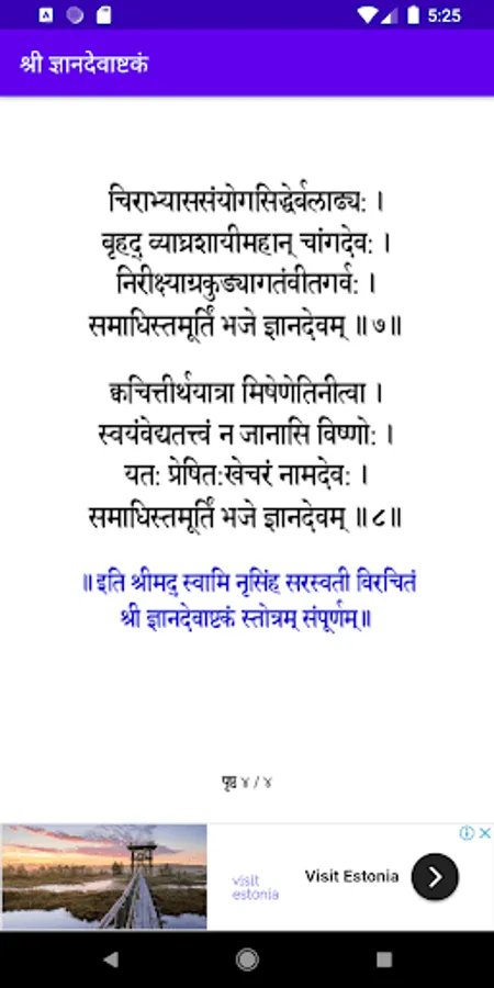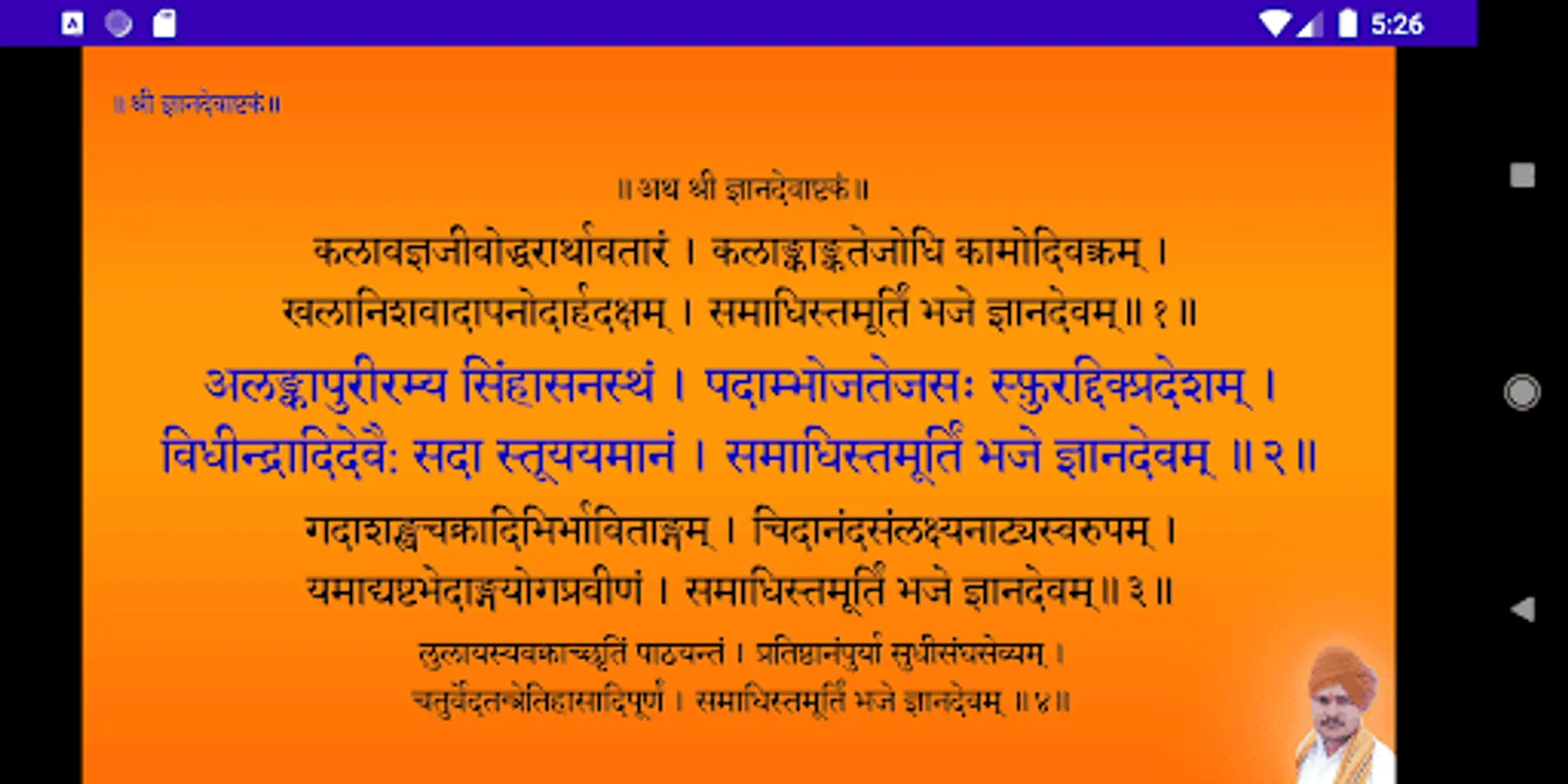 (स्वामी नृसिंह सरस्वती), the Jnandevashtakam (श्री ज्ञानदेवाष्टकं) is sung daily for obtaining the blessings of Lord Pandurang (पांडुरंग). If you do not find time to recite it on your own, just listen to it in the beautiful voice of Parampujya (परमपूज्य) Pramod Maharaj. The app keeps a record of the number of recitals. So enjoy and obtain blessings of Lord Pandurang.