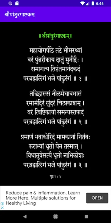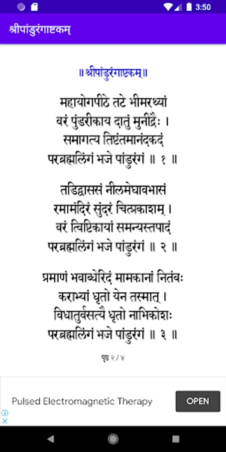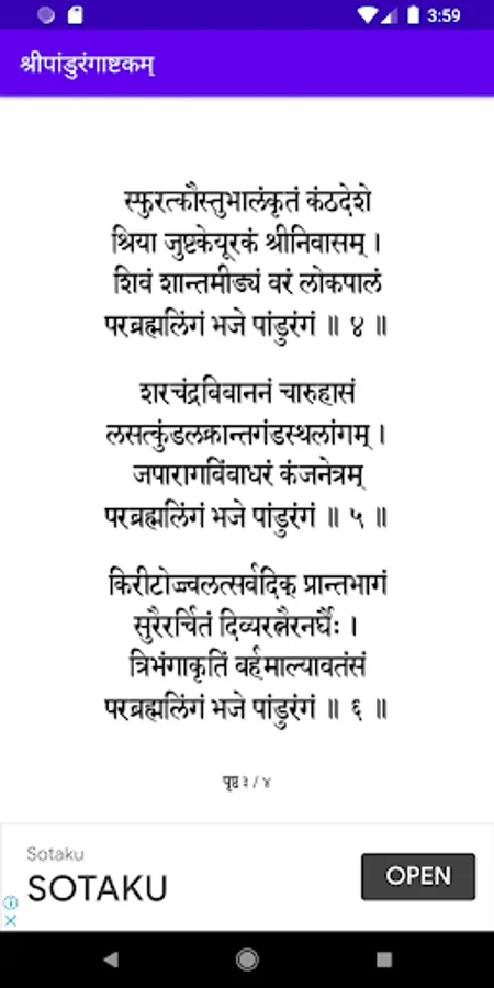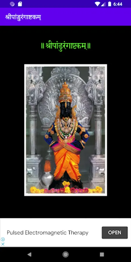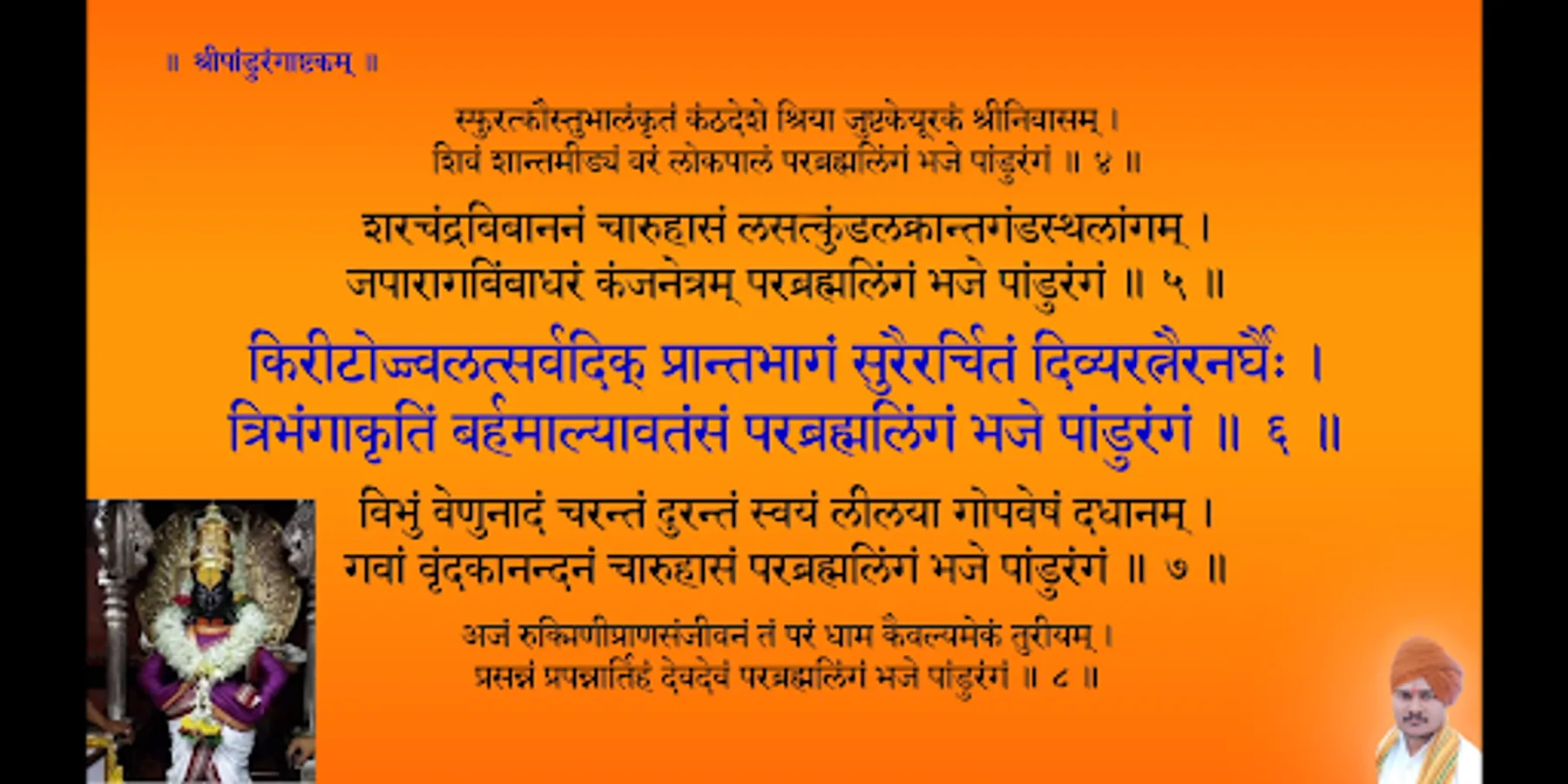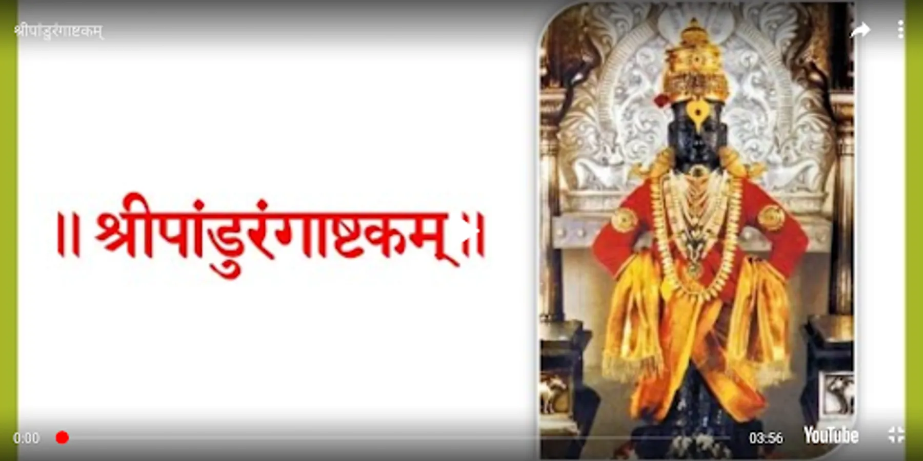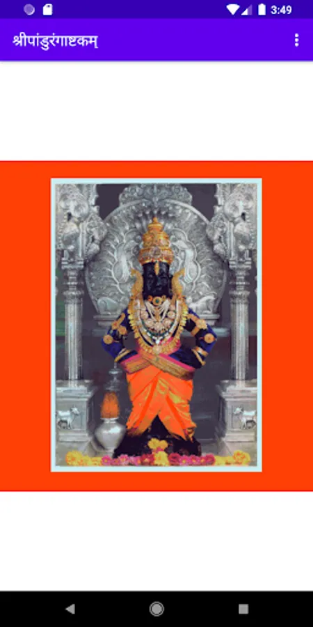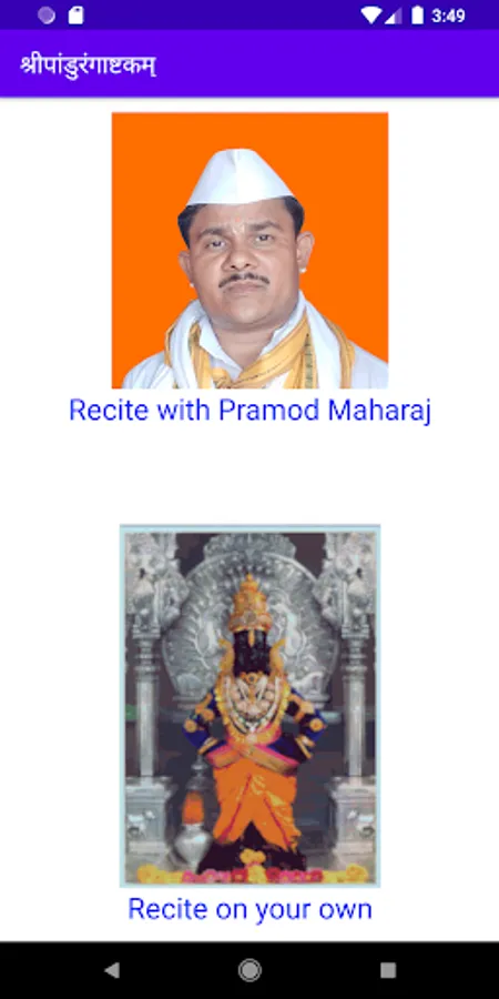 Popular amongst Warkari’s (वारकरी), and written by Shrimad Shanaracharya (श्रीमद् शंकराचार्य), the Pandrangashtakam (पांडुरंगाष्टकं) is sung daily for obtaining the blessings of Lord Pandurang (पांडुरंग). If you do not find time to recite it on your own, just listen to it in the beautiful voice of Parampujya (परमपूज्य) Pramod Maharaj. The app keeps a record of the number of recitals. So enjoy and obtain blessings of Lord Pandurang.