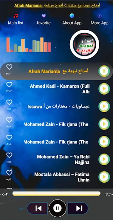 With the Moroccan Amdah songs application, you can listen to all Moroccan Amdah songs without using a Wi-Fi network.
