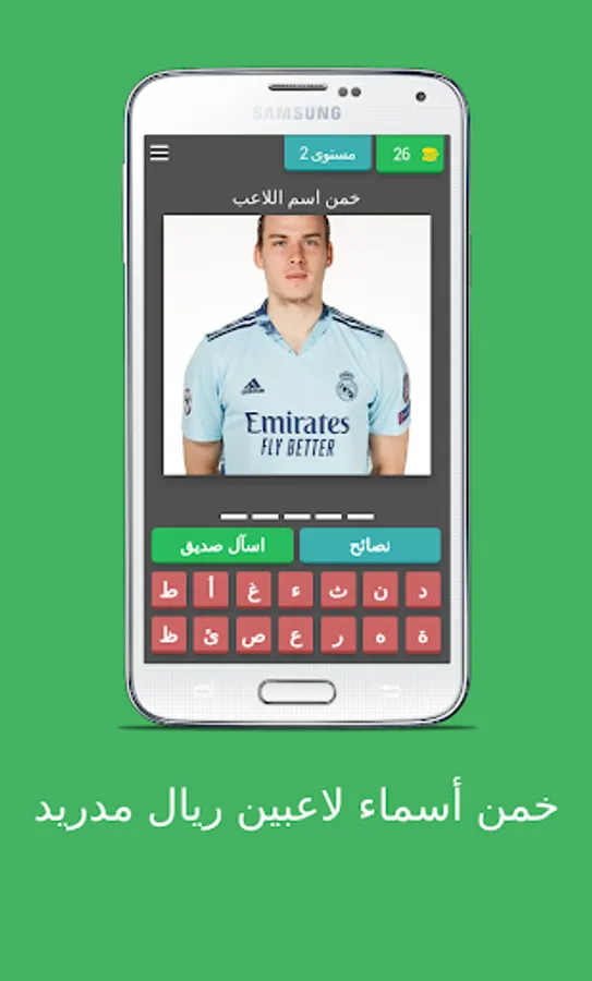 The game Guess the names of Real Madrid players, a game that stimulates memory and is also fun to listen to.
