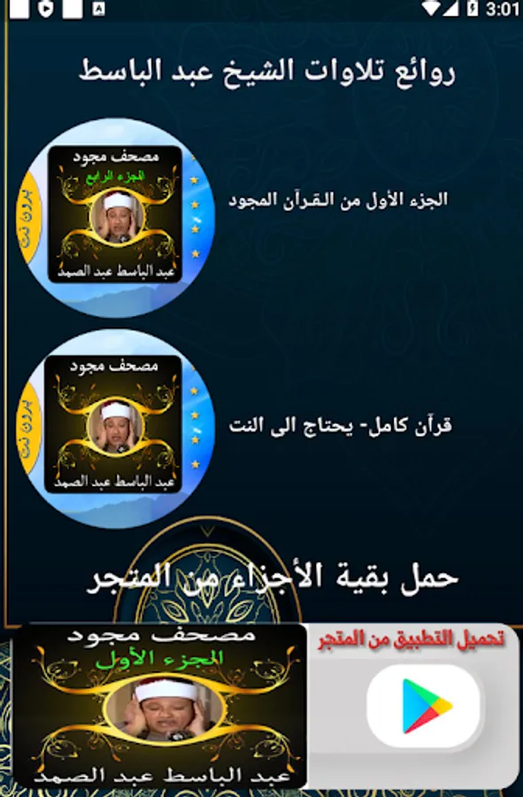 The application of the Holy Qur’an by Sheikh Abd al-Basit Abd al-Samad in its fourth part, with high quality