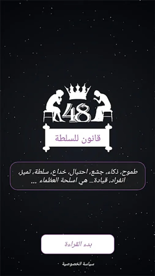 With the "48 Law Authority" will learn to acquire and understand others and how to control and sovereignty over them, and learn how you can use these rules and what is the right time to do so and in any position used.