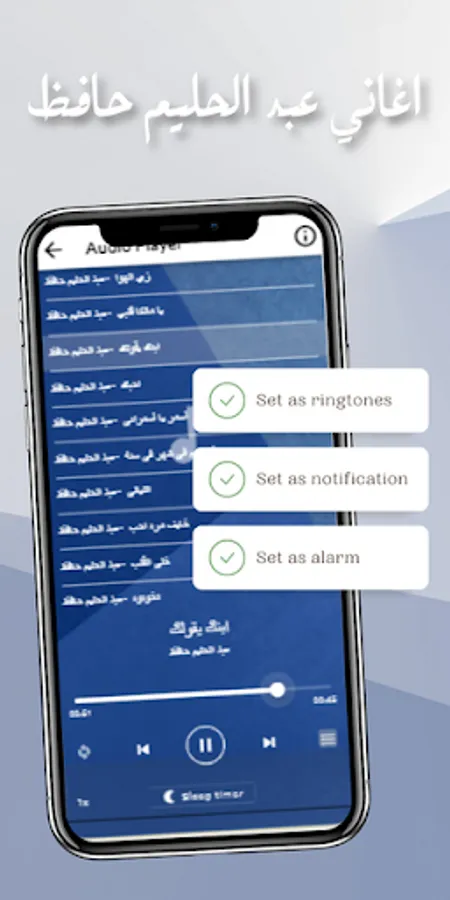 • Sleep timer, you can set how long you will listen to the song and it will automatically stop when the time is up.
