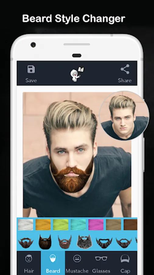 5- Save the image to the phones gallery using this hair style app best and men mustache editor, or hair and beard staler app.