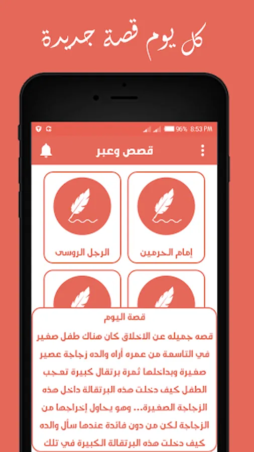 🔥 قصة يومية متجددة حيث يوفر لك التطبيق قصة جديدة كل يوم .