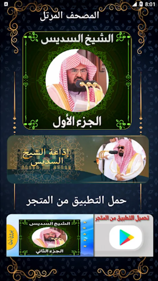 This first part includes recitations starting from Surat Al-Fatihah to Surat Al-Shu’ara, while the second part includes the rest of the surahs, and thus will enable you to listen to the surahs of the Holy Qur’an in high quality and without internet, with the voice of Sheikh Abdul Rahman Al-Sudais in the latest version of his distinctive recitations.