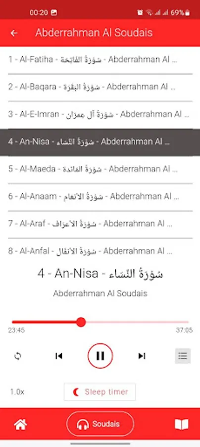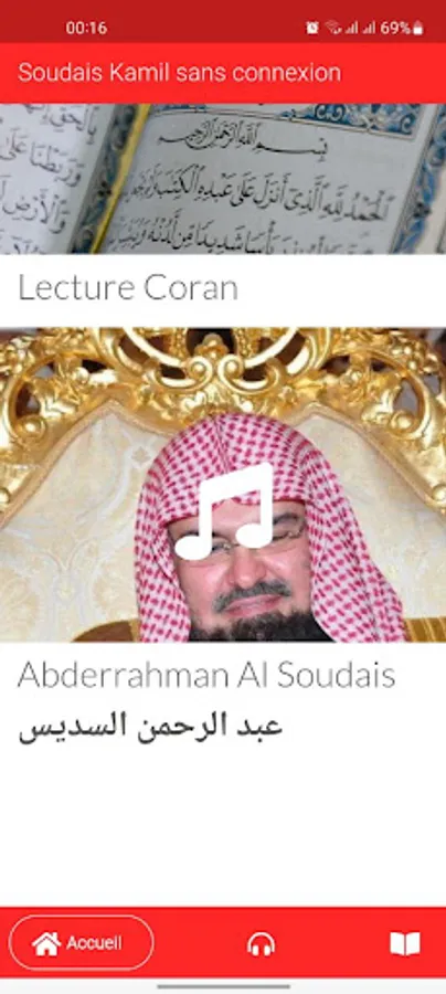 This application allows you to listen to the complete holy Quran recited by Abderrahman Al Soudais on your smartphones and tablets without the need for an internet connection. (Offline - offline)