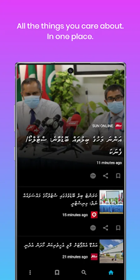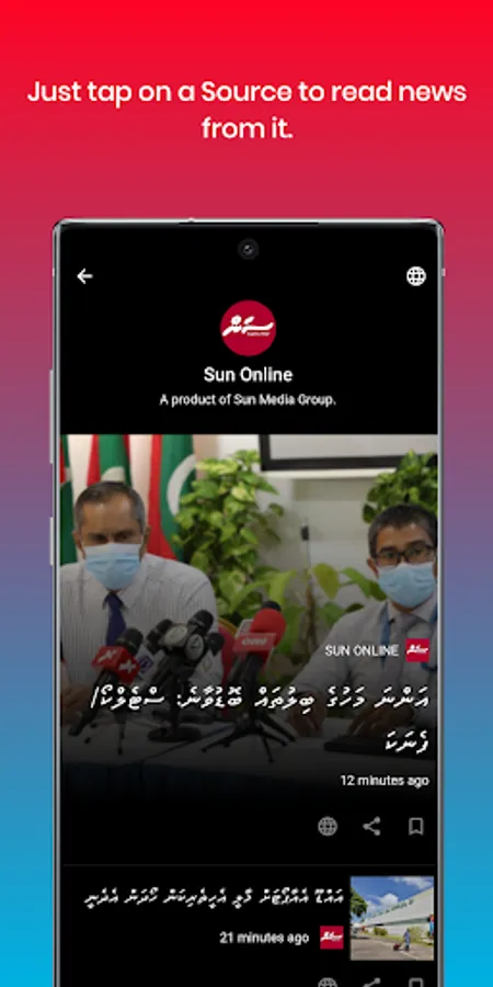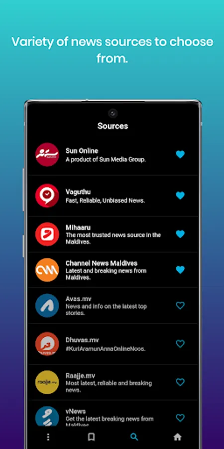 Featured news sources include ever growing collection of online news providers such as Sun Online, Mihaaru, vNews, PSM News, and many others. Logos, names and other data of the respective news providers are owned by them and this app is just a way to access them.