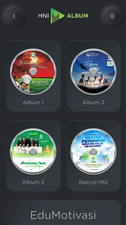 The HNI Album application is a music and audio application that can be listened to online. Contains HNI nasyid nasyid, motivational or educational audio from HNI Leaders or Management.