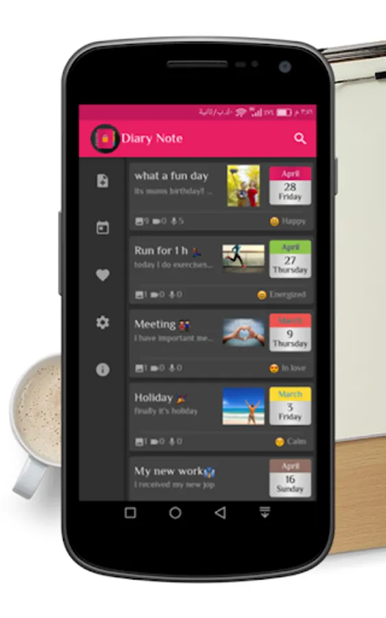 Use this diary app to make your own personal journal of daily events, appointments, secrets and feelings.