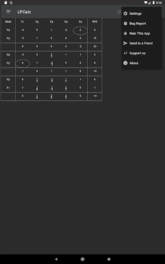 LPCalc is an Android implementation of the LPAssistant software, created by G. E. Keough, with similar features and graphical interface. This Application is intended to be educational tool.