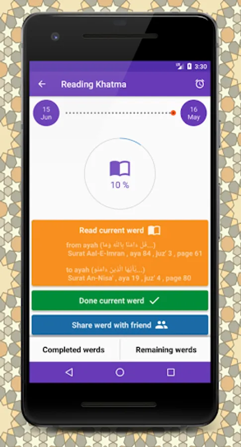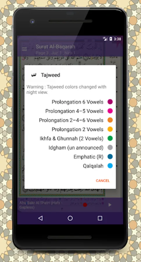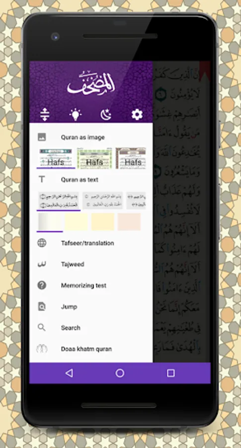 - Gapless audio playback , recitations by many famous reciters (Rewayat Has ,Warsh and Qaloon).