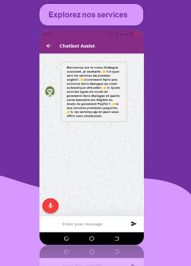 👉🏿Chat bot to meet the concerns of users and customers.