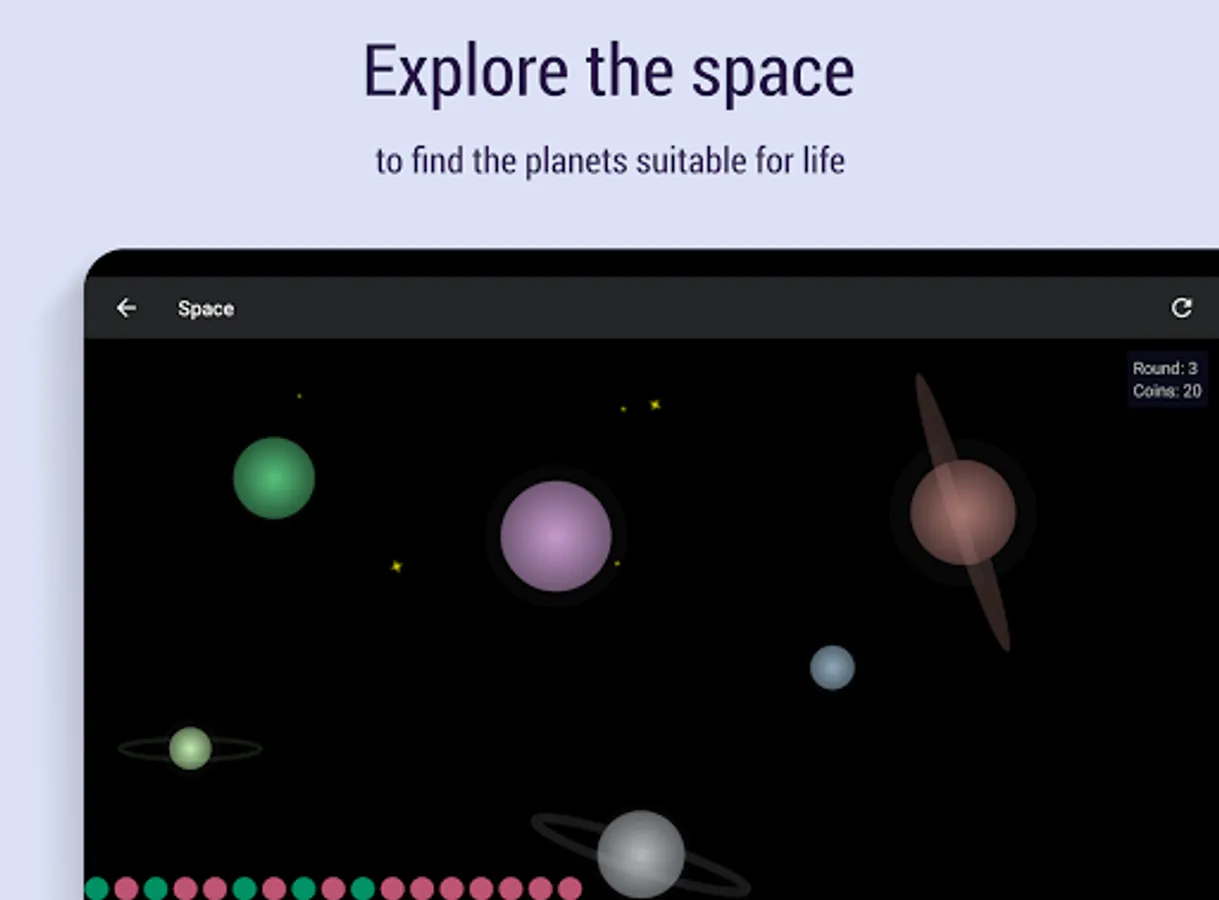 * Space game - save your team on a spaceship, finding the planets, suitable for life