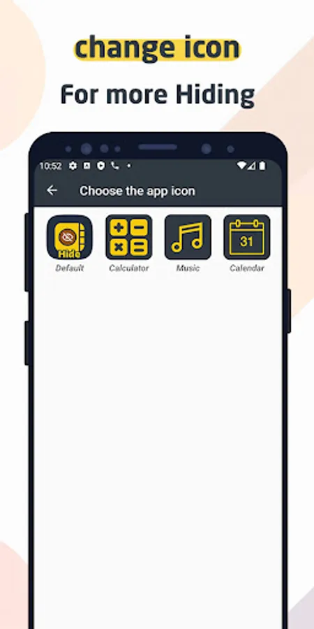 * Change the application icon with other icons such as a calculator, music or calendar