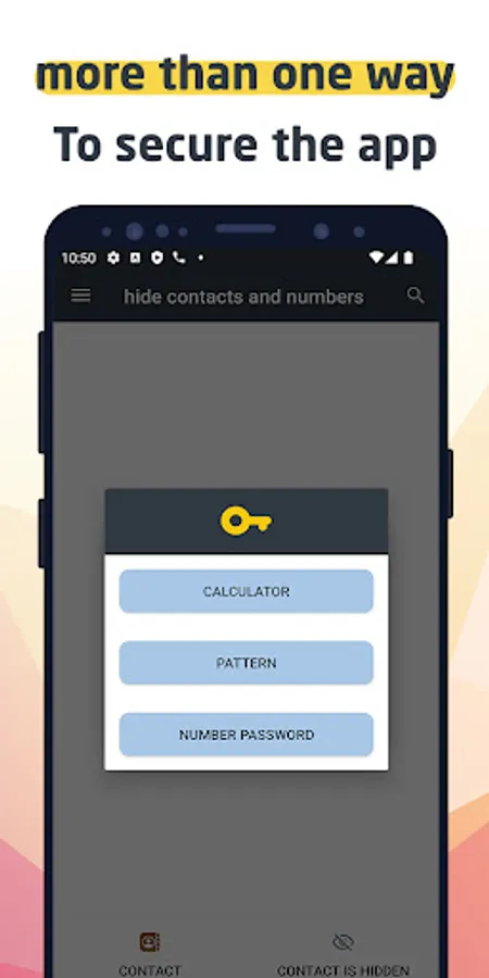 * Hide any contact from a phone and be inside the application protected by a password.