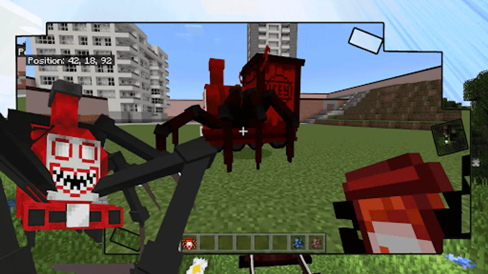 This choo choo charlies mcpe adds a number of new features that will make the Minecraft game even more fun and scary. Mod Horror Choo Choo Charles for MCPE also adds an element of horror by presenting Choo Choo Charles as an enemy who is always chasing players. This character will appear in the Minecraft world with a train and spider legs that he is carrying, and he will continue to chase the player until he catches them. Players must try their best to avoid the Choo Choo Charles addon and find a way to defeat him. This choo choo charles mod for mcpe will be the perfect choice for players who like horror and train games.