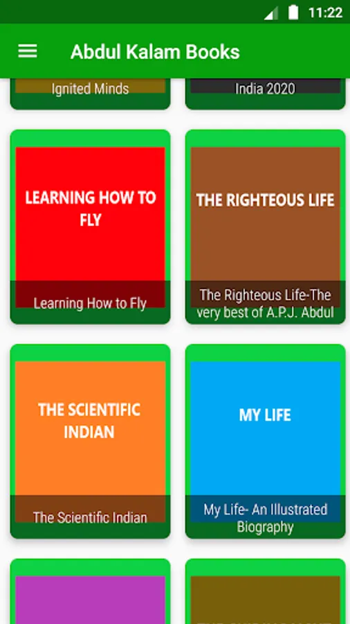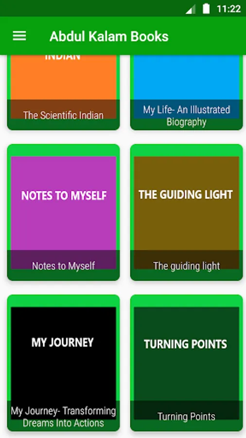 In this App you will get complete books written by Dr. APJ Abdul Kalam like Wings of Fire, Ignited Minds, India 2020, Turning Points and many more.