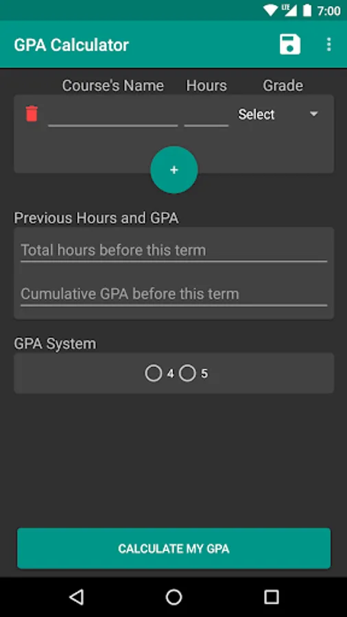 Finally, choose your university's GPA system and press calculate.