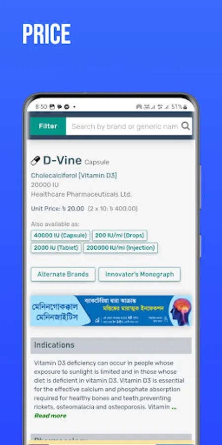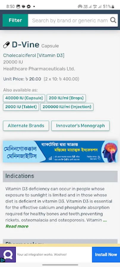 Comprehensive Database: Access a vast collection of medicine names and generic alternatives, ensuring you stay updated with the latest pharmaceutical offerings in Bangladesh.