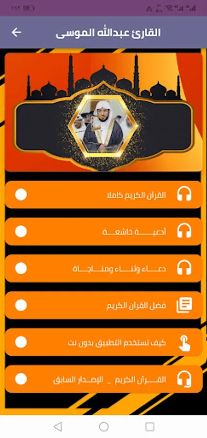 The Sheikh Abdullah Al-Mousa application, the entire Qur’an without the net, allows you to listen and download the entire Holy Qur’an with the voice of Abdullah Al-Mousa without the net, and you can save the Noble Qur’an without the net to your mobile phone easily and conveniently through one application that includes all the entire surahs of the Noble Qur’an with the voice of Sheikh Abdullah Al-Mousa and helps you facilitate memorizing the Qur’an The Holy Quran without the net and provides you with a pleasant experience with an influential voice and a unique performance by its owner Abdullah Al-Mousa without the net, high quality Holy Quran Abdullah Al-Mousa sheikh abdullah al mousa