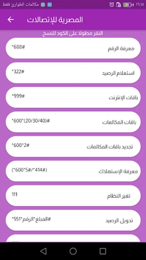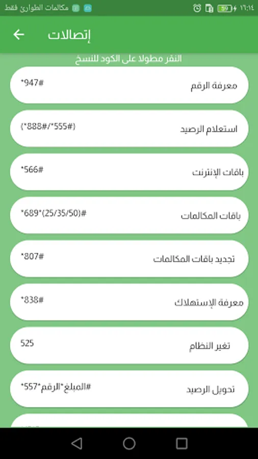 The application is characterized by displaying service numbers and offers for each network on a single boundary and knowing the net balance when recharging, whether for the landline or mobile network