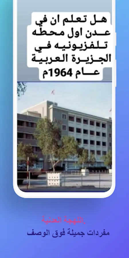 The Adenic dialect is a variant of Arabic spoken in the Arab regions bordering the Gulf. Speech in this dialect has many features and compatibility with different methods of communication and expression. It is one of the most used dialects in certain regions of the world. From this standpoint, we have programmed an application to learn the dialect of the sons of Aden to be a specialized application that helps users to learn the Aden dialect. Provides a variety of media useful in learning and understanding dialect.