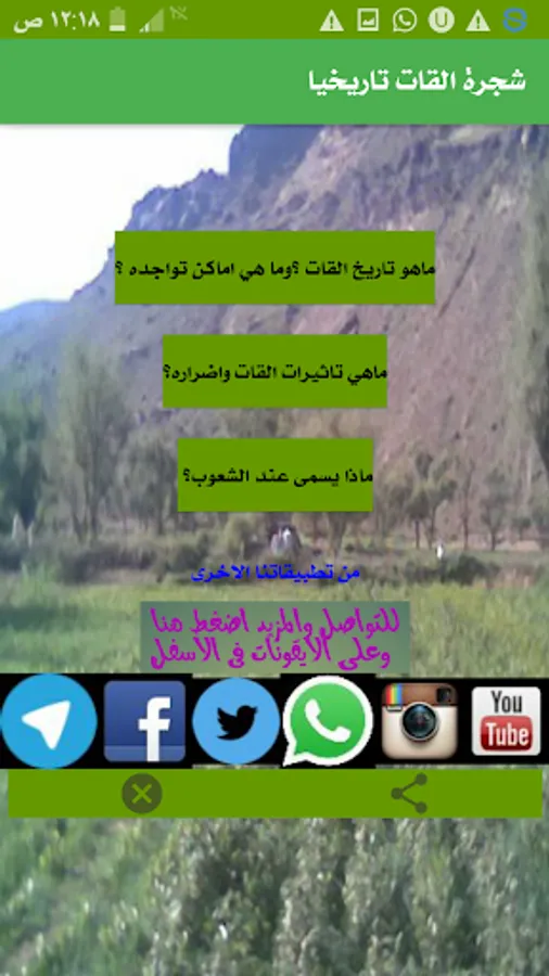 Tbaiq introduces you to the various Alasme tree and qat cultivation places and its presence Mndhu foot and also shows the peoples Taatatah explains the health effects and damages on the individual and society