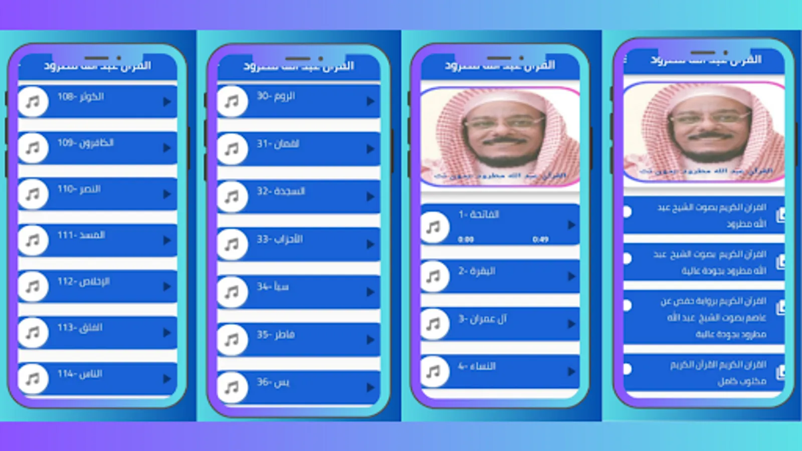 And if you are a fan of listening to the Noble Qur’an with the voice of Sheikh Abdullah Matroud … and other constellations of sheikhs, or if you want to learn the provisions of intonation or get acquainted with the most powerful legal legal paper, please feel free to take a look at the rest of our applications on the store that are available to users for free And he walks.