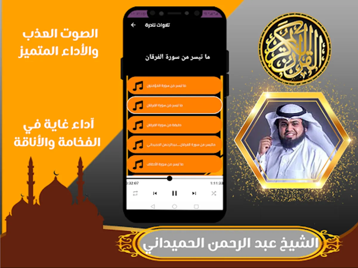 The Abdul Rahman Al-Hamidani reader program without the net will help you in this, as the application will help you in downloading the Noble Qur’an with the voice of Abdul Rahman Al-Hamidani without the net to your phone easily