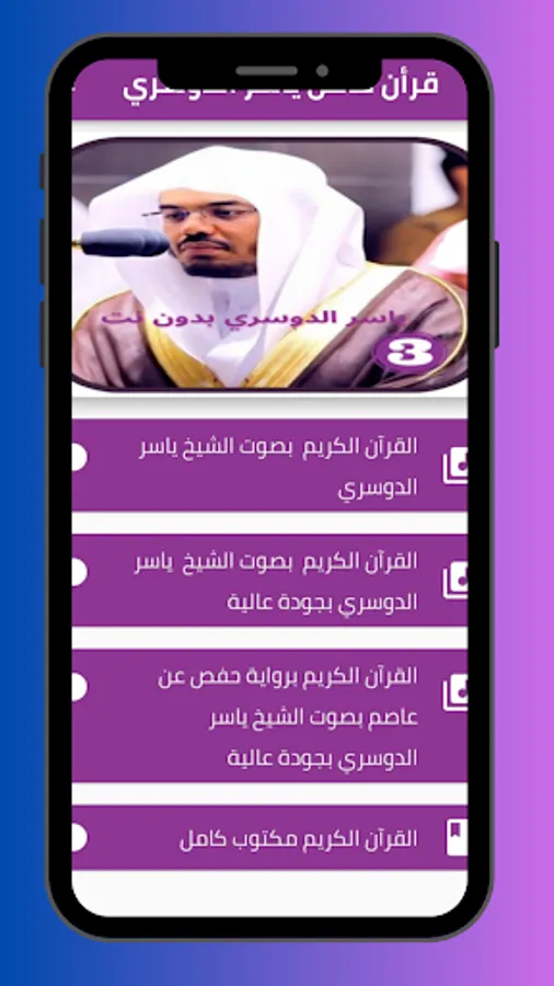 Definition of a complete Quran application with the voice of Sheikh Yasser Al-Dosari without Net ⭐