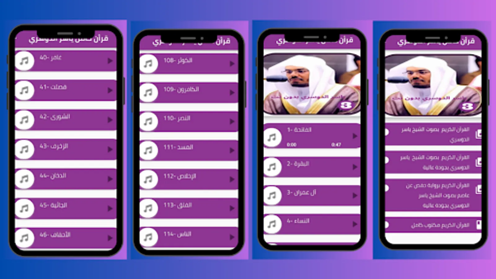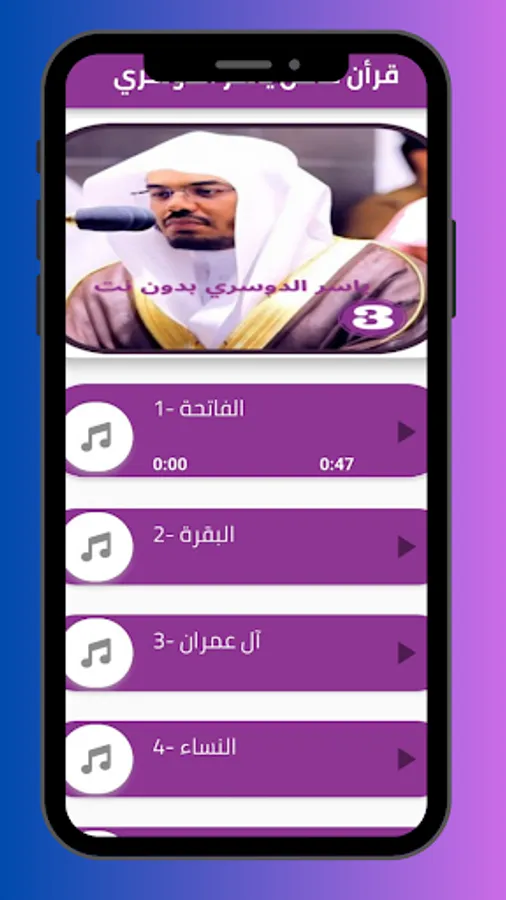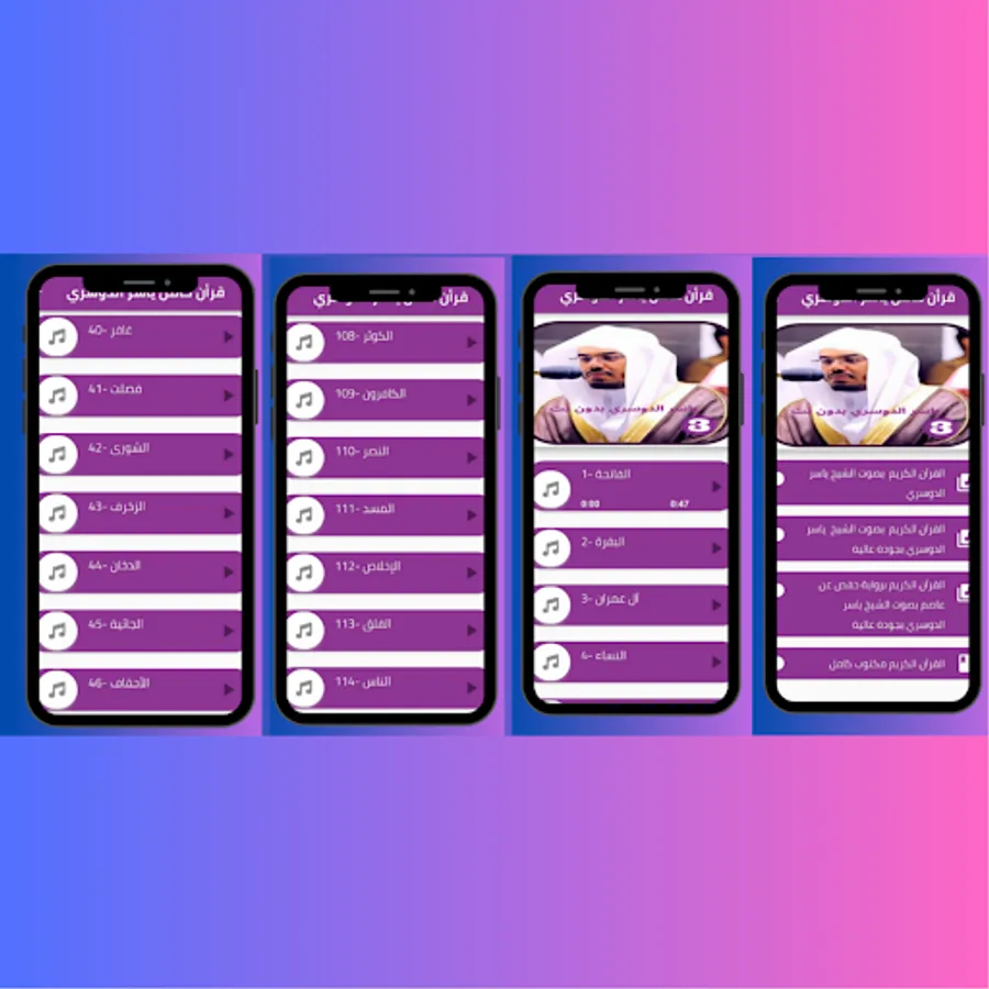 You will not need to pay money to purchase the application, and you will not need a large space on your device to install the Qur’an application with the voice of Sheikh Yasser Al-Dosari, and after installing the application with ease from the store, you will be able to listen to the Noble Qur’an with the voice of Sheikh Yasser Al-Dosari simply.