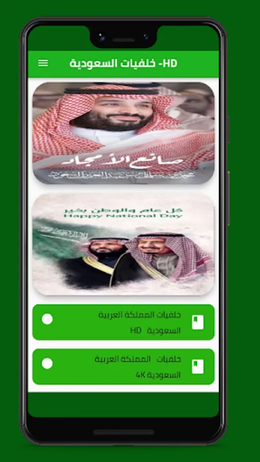 The backgrounds inside the Saudi HD wallpapers application: wallpapers for the Saudi flag and also