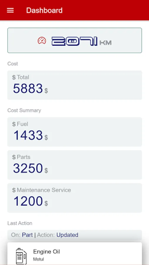 ⦿ Shows you different statistics like how much you spent, when to take a maintenance service or which part need a repair/replacement.