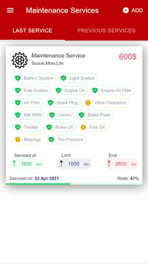 ✔ Maintenance: Take notes and track the maintenance services. Check the key points when servicing.
