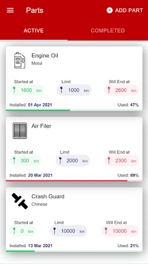 ⦿ Put entries when you refuel, change/repair parts or take maintenance services.