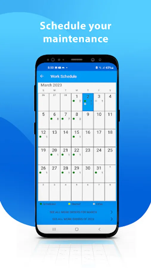 EasyMaint Mobile will display a calendar where you can quickly view maintenance activities.