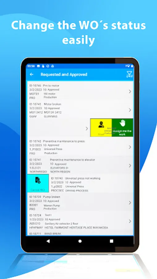 You can create, schedule, review tasks, assign materials and complete Work Orders. Track and assign labor to the work requests and scheduled work orders.